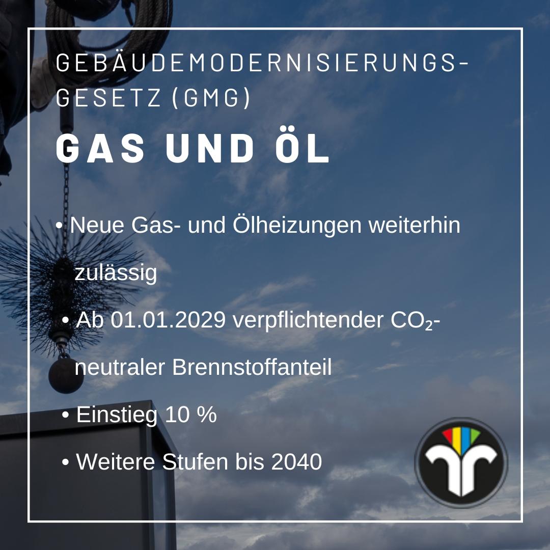 3. „Bio-Treppe“ für neue Gas- und Ölheizungen, wer nach Inkrafttreten des GMG eine neue Gas- oder Ölheizung einbaut, muss ab dem 01.01.2029 einen wachsenden Anteil CO₂-neutraler Brennstoffe einsetzen. Start 2029: mindestens 10 %, stufenweiser Anstieg bis 2040 (gesetzlich festgelegt in drei Schritten), für den klimafreundlichen Brennstoffanteil soll kein CO₂-Preis anfallen (zur Kostendämpfung).