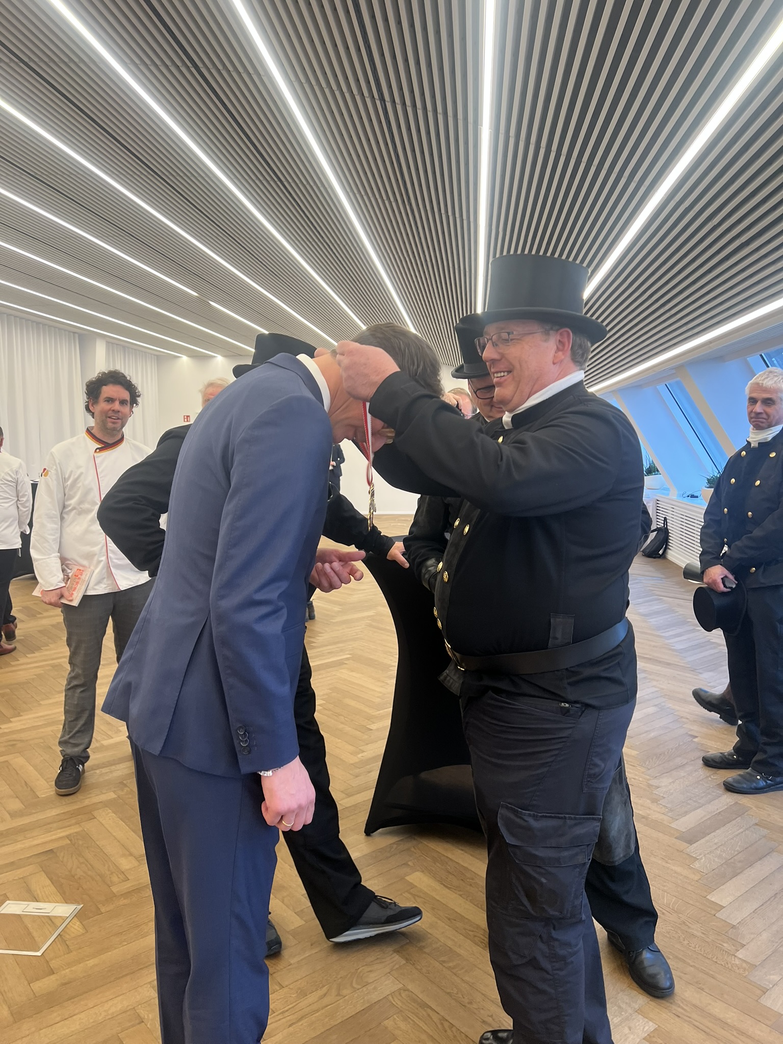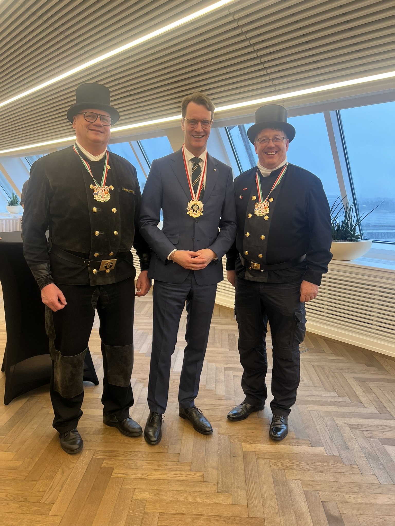 Im Rahmen des Neujahrsempfangs überreichten der Vorstand für Presse- und Öffentlichkeitsarbeit Paul Giebeler sowie der Geschäftsführer der Schwazze Kääls, Andreas Peeters (Vizepräsident des Bundesverbandes des Schornsteinfegerhandwerks u. Ehrenlandesinnungsmeister), den diesjährigen Sessionsorden der Schwazze Kääls an das Ehepaar Wüst das im vergangenen Jahr zu Ehrenschornsteinfeger ernannt wurden. Gemeinsam mit dem Bäckerhandwerk erlebte das Schornsteinfegerhandwerk einen gelungenen Neujahrsbesuch, der eindrucksvoll zeigte, wie wichtig der Schulterschluss der Handwerksbranchen ist. Handwerk steht für regionale Wertschöpfung, Ausbildung, Sicherheit und Zukunft – und ist damit ein unverzichtbarer Partner für Politik und Gesellschaft.