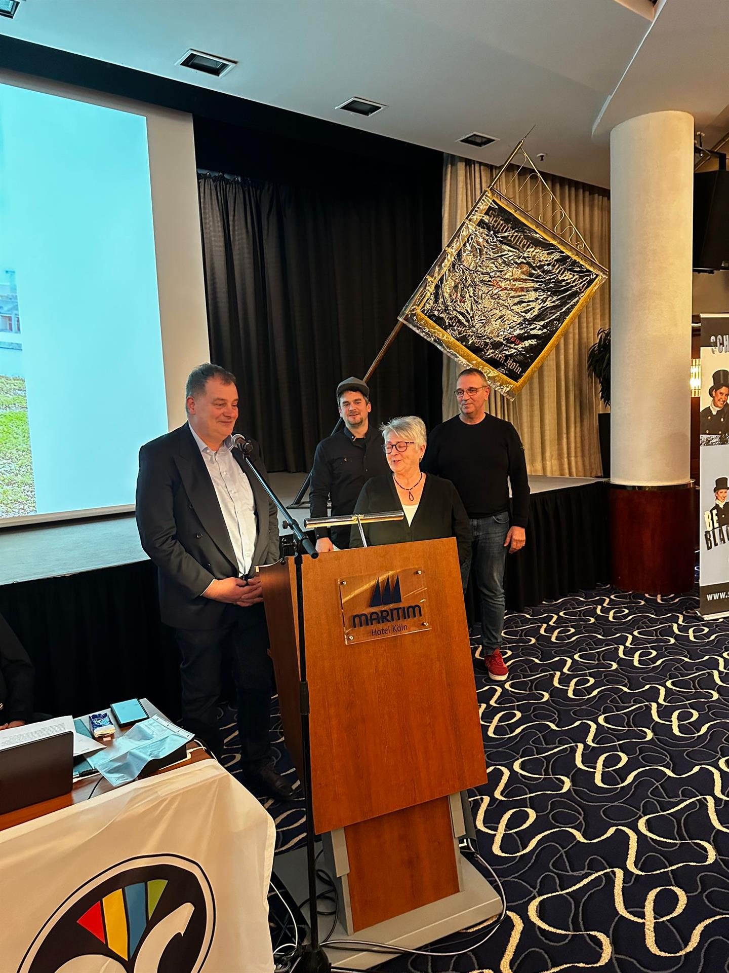 Ein besonders emotionaler Moment war die Verabschiedung von Edith Fischer-Mende. Die GDS (Gemeinschaft der Schornsteinfeger e.G.) verabschiedete unsere Edith, die 27 Jahre die gute Seele der Einkaufsgemeinschaft gewesen ist, emotional vor den Kollegen*innen im Rahmen der Innungsversammlung. Gerd Schmitz und sein Team ließen fast drei Jahrzehnte Revue passieren und Edith Fischer-Mende begeisterte zudem in einem Grußwort, dass in stehenden Ovationen der anwesenden Schornsteinfeger endete und so manche Freudenträne zum Vorschein brachte. Denn Edith Fischer-Mende begleitet die meisten Anwesenden von der Einkleidung bis zum heutigen Zeitpunkt dem Verkauf von allem was unsere Handwerk für seine Arbeitsausführung braucht.